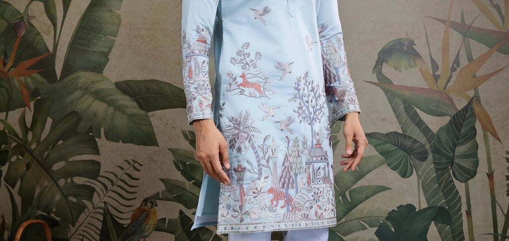For men who prefer something distinctive, Zyraq’s Indo-Western collection blends traditional craftsmanship with modern silhouettes. Asymmetrical cuts, layered panels, and subtle detailing create a bold yet elegant statement. These outfits are especially suited for sangeet nights and cocktail functions.